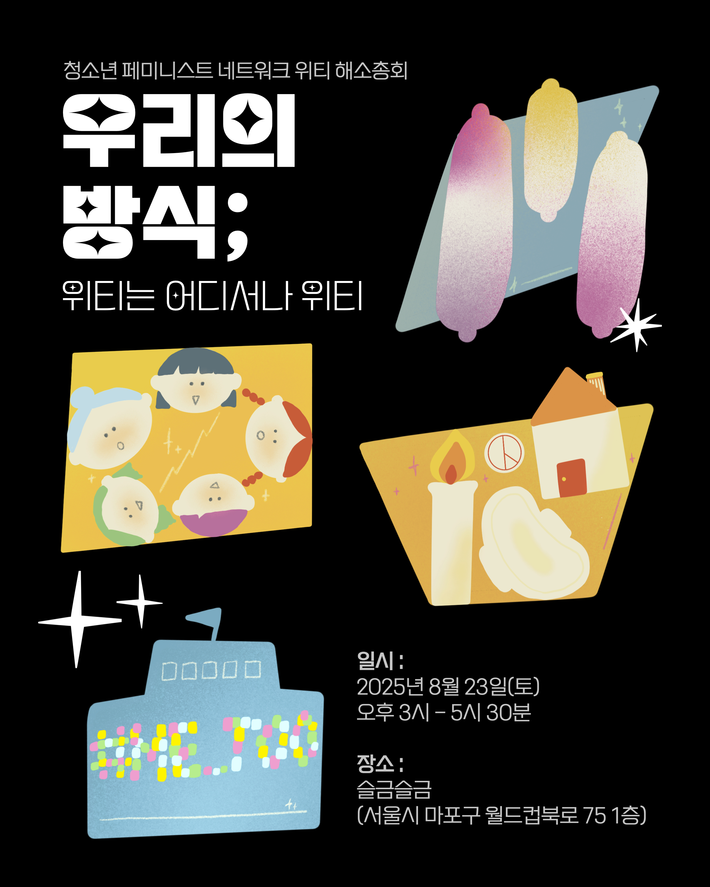 스쿨미투 이후, 우리들의 말하기를 이어가고자 창립한 청소년 페미니스트 네트워크 '위티'의 마지막 총회가 열립니다. 2025년 위티 해소총회 [우리의 방식: 위티는 어디서나 위티]에 여러분을 초대합니다.