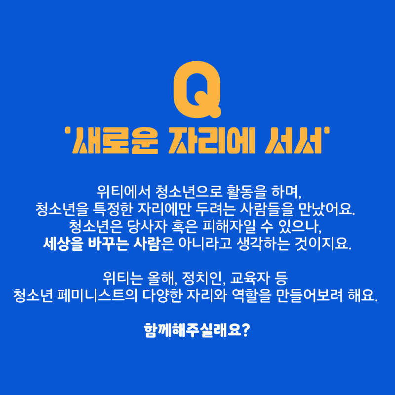 ์ํฐ์์ ์ฒญ์๋ ์ผ๋ก ํ๋์ ํ๋ฉฐ, ์ฒญ์๋ ์ ํน์ ํ ์๋ฆฌ์๋ง ๋๋ ค๋ ์ฌ๋๋ค์ ๋ง๋ฌ์ด์. ์ฒญ์๋ ์ ๋น์ฌ์ ํน์ ํผํด์์ผ ์ ์์ผ๋, ์ธ์์ ๋ฐ๊พธ๋ ์ฌ๋์ ์๋๋ผ๊ณ ์๊ฐํ๋ ๊ฒ์ด์ง์. ์ํฐ๋ ์ฌํด, ์ ์น์ธ, ๊ต์ก์ ๋ฑ ์ฐ๋ฆฌ ์ฌํ์์ ์ฒญ์๋ ํ๋ฏธ๋์คํธ์ ๋ค์ํ ์๋ฆฌ์ ์ญํ ์ ๋ง๋ค์ด๋ณด๋ ค ํด์. ํจ๊ปํด์ฃผ์ค๋์?